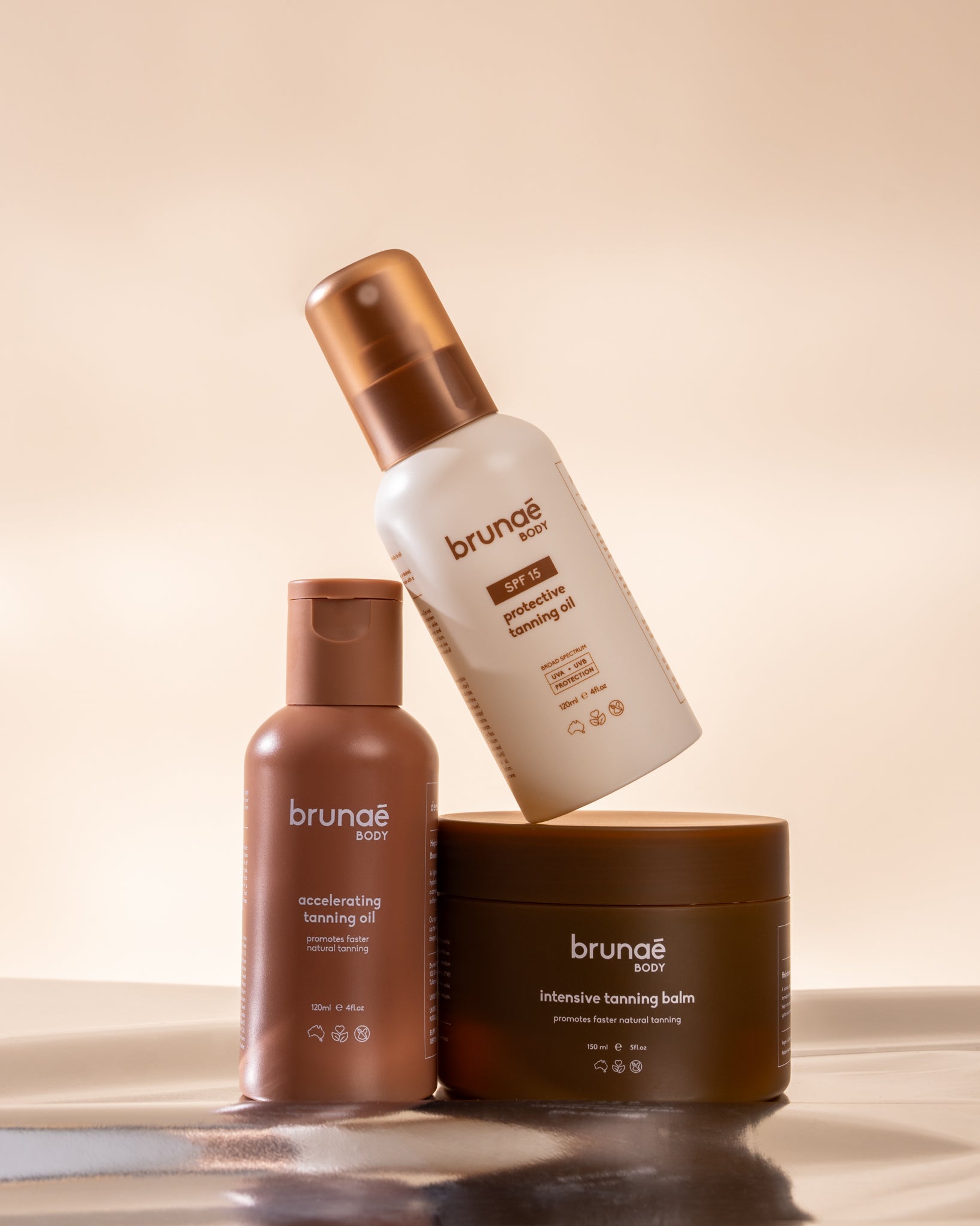 Our products are not your regular tanning oils. At Brunaè, we have a huge focus on skincare, and have selected high quality skin-care ingredients which are designed to hydrate and nourish your skin while you tan.